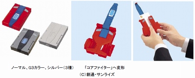 なんとこの名刺入れ、「ガンダム」のコクピットであり、また戦闘機にもなる「コアファイター」の変形ギミックを取り入れたもの。携帯時は、コックピット時のようにコンパクトに折りたたまれているが、いざ名刺を差し出す時になると、「コアファイター」に形を変える。