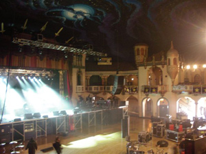 ちなみにその記者はコスタリカ出身で、南米の国々にもムックのファンがたくさんいて彼らの来訪を待ち望んでいるということを強調していた。うーん。なんだか地球がものすごく小さなものに思えてきてしまう。それは、たまたまこのアラゴン・ボールルームの内装が宇宙的スケールだったりするから…ではないはずだ。