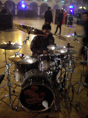 | ▲同じ頃、SATOちはフロアでドラムのセッティング中。 |