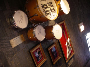 | ▲ハード・ロック・カフェ店内で見つけたチープ・トリックの使用楽器。さすが地元の大御所! 実は毎年4月1日には、イリノイ州では「チープ・トリックの日」だったりもするんである。 |