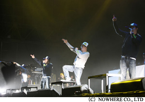 そしてアンコールでは、TERIYAKI BOYZ(R)、カニエ・ウエスト、ファレルの3者が一緒にステージに登場し、ファレルをフィーチャリングした「ZOCK ON!」(2008年3月19日発売)、カニエ・ウエストをフィーチャリングした「I still love H.E.R.」(2007年1月24日発売)を披露。そんな突然のサプライズに、会場のファンは大喜びで盛り上がった。