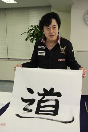 『道』というタイトルには、デビューからの40年の道のりと、これから切り開いてゆく道、という想いが込められており、その想いの丈を通常の半紙の10倍ほどある大きさの紙に「ゼーット!」の雄叫びとともに熱く書き下ろした。