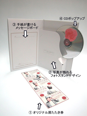いっそ、この曲を母へのプレゼントに…と思うのは当然のようで、通常盤、DVD付初回限定盤のほかにもうひとつ、ギフトパッケージ盤なる限定盤が用意されている。