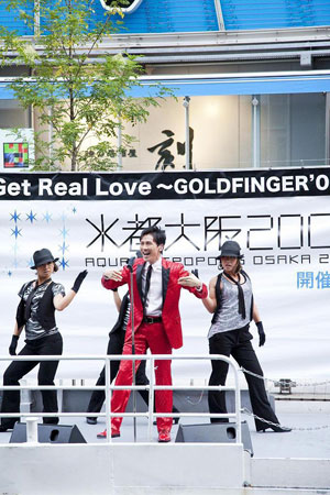 ニュー・シングル「Get Real Love ~GOLDFINGER’009~」を9月2日にリリースした郷ひろみが、同日夕方、大阪・道頓堀にて船上ゲリラ・ライヴを行なった。
