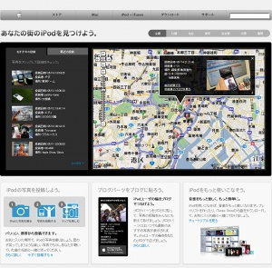 アップルのサイトで面白そうな企画が行なわれている。「あなたの街のiPodを見つけよう。」と題されたこのページには、日本各地で使われているiPodの写真が、日本地図の上に貼り付けられている。