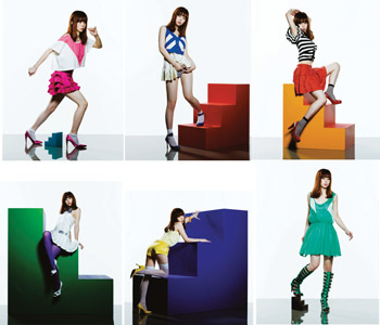 となると、早くも気になるのは新しい衣装だ。なんと今回のアルバムでは、ブックレットフォトにてSTEP(=階段)とコラボレーションした6パターンの衣装を披露している。ユニークなポーズのものから、細いウエストがチラリと覗くセクシーポーズ、さらには自らスカートをめくりあげてパンティを見せるというドッキドキワックワク(?)なポーズまで、様々なポーズとカラフルな衣装を楽しむことができる。