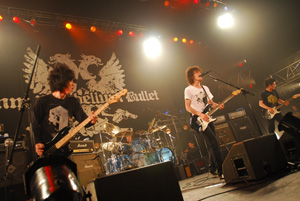 そしてそのステージ上で、10月18日(土)に日比谷野外音楽堂でワンマン・ライヴ<暁の野音>を行なうことを発表。さらに、バンド名にちなんで【キューミリの日】として9月9日(火)に9mm Parabellum Bullet presents<カオスの百年 vol.5>と銘打った自主企画を渋谷La.mamaで行なうことも同時に発表された。