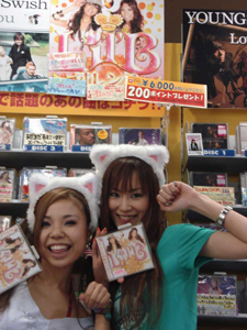 ちなみにLil’Bの二人は、このライヴの前には、いま巷を賑わせている“ギロッポン(六本木)の鼠”に負けじと、渋谷のHMV、タワーレコード、TSUTAYA、センター街、渋谷109を、キュートな猫ミミ姿で周り、デビューの挨拶を行なっていた。