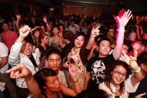 オープンからほどなくして、既にエントランスには50人以上の列。深夜までこの行列はなくならず、最終的には約1200人というクラブの動員記録を叩き出す集客でクラブは熱狂! 日本同様、音楽業界関係者やファッション関係者、モデル風の方々も多数。また、最近の北京に多く見られる白人系のお客さんも目立った。