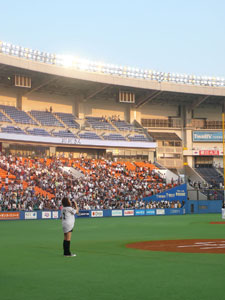 毎回チケットがソールド・アウトとなっていることでも注目を集めているマンスリー・ライヴ<ジュジュ苑>が好評なJUJU。ニューヨーク在住でもある彼女が、7月4日、アメリカ独立記念日に千葉マリンスタジアムで行なわれた千葉ロッテマリーンズ vs. 福岡ソフトバンクホークス戦のオープニングに、日米両国の国歌を独唱した。