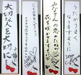 短冊に願い事を書くと『恋のうた』のジャケットのモチーフとなっているさくらんぼのデザインにちなんで、山形からさくらんぼ娘が山形県産の超高級さくらんぼを無料で配布したりと、<恋の日祭り>イベントに多くの人が集まり、2日間で約5000人の人が参加する大盛況。