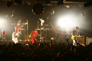 「イェイ! 今日楽しいね。なんで今日みんな正装してきてないんだよ。今日は仮装パーティだよ?」と会場を笑わせた後、「懐かしい曲をやります。本当に懐かしいよ!」と言って演奏したのは「サマータイム・ブルース」。レアな楽曲に会場はさらに勢いを増して盛り上がった。その後も「ブラッディ・マリー、気をつけろ!」「黒にそめろ」など、夏フェスばりのセットリストにファンも大興奮! 本編ラストの「ダーティーな世界(Put your head)」の演奏が終わり、メンバーがステージを去った後も、会場のファンはまだ満足していないとばかりにアンコールをかけた。