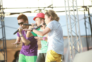 青空と芝生が広がる絶好のフェス日和の中、午後3時にイベントはスタート、気温はグングン上昇し、この日は今夏最高記録となる39度を記録する猛暑に。厳しい暑さに負けず劣らずセンターステージではET-KING、九州男、MEGARYUが熱いパフォーマンスを展開、BENNIE Kが「サンライズ」「SPEAK NO EVILE」といった大ヒットチューンを爽快に届けて、指を突き上げた空にはひこうき雲。こういったマジックが生まれるのも野外フェスならではのことで集まったファンも大歓声を上げていた。