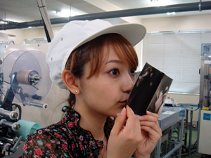 光岡昌美は工場も見学。「実際にCDが出来上がっていく過程も見させて頂いたのですが、本当にすごかったです♪普段、私もスタッフの人も、出来上がってきたCDを貰うので、皆ですごーい!を連発しました(笑)。あと、ちゃんとCD自体の重さを測ったりしていてびっくりしました(^○^)」とむじゃきにはしゃぐ彼女であった。