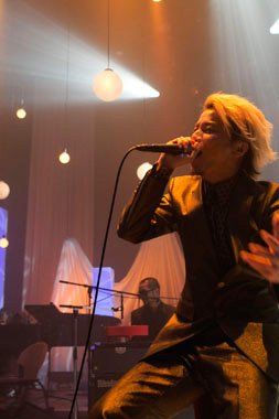 ステージ中央のイスに腰をかけたKREVAは、ピアノの音色に合わせて熱っぽくラップを刻むと、今度は自らが「○○がくればいいのに」とメンバーを一人ずつ呼び込んでいく。ピアノ、フェンダーローズ、オルガンの鍵盤3人と、ギター、ベース、ツイン・ドラム、そしてKREVAという総勢8人で編成されたこのスペシャル・バンド(東京はさらに4人のストリングス隊も参加)は、その圧倒的なパフォーマンスで、奇跡の瞬間を紡いでいった。