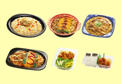 登場する商品は、「アホライス」や「3種の肉三昧丼」「塩むすび唐揚3個セット」などなど、どれも世界のナベアツのネタ、“3の倍数と3が付く数字のときだけアホになります。いち、にい、さぁ~ん!” のフレーズにちなんだオモローなもの(だから6種類(3の倍数)の商品展開)。