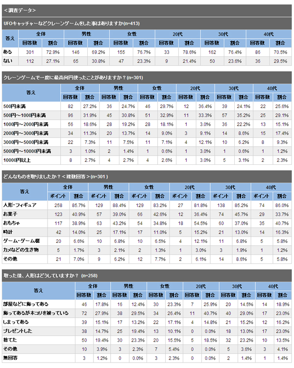 クレーンゲームに関する意識調査