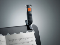 C24の軽量・コンパクトなボディをより魅力的にしているのが、スライド式USB端子の存在。ケーブル不要でパソコンと接続できるだけでなく、付属のクリップを取り付ける役目も果たしている。譜面台やマイクスタンドにカンタンに取り付けられるこのクリップ取り付けのギミックはユニークかつ秀逸で、仲間の注目を集めること間違いなしだ。