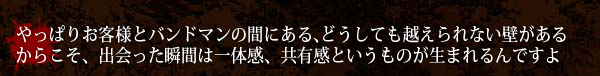 大槻:でも、壁あって、だからこそ、出会った瞬間は一体感、共有感というものが生まれるんですよ。お互いに人生を共有してるような状況だったら、爆発するような連帯感なんて逆に生まれないですよ。ぶっちゃけ、ロックと言っても仕事であり、ライヴと言っても娯楽でしかない。そういう現実を抱えつつも、今ここで一体になるんだっていう熱い想いが、ロックのライヴにはあるんですよね。逆に、その面白さを歌詞にしてみたかったんです。