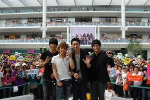 彼らの代表曲「僕の人」、韓国で現在ヒット中の「ラララ」を披露し、イベント後半には「GET ALONG TOGETHER」を熱唱、そこにこのヒット曲の生みの親である山根康広がサプライズ・ゲストとしてステージに登場、日本と韓国の夢のコラボレーションが実現した。