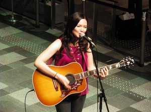アイルランド系アメリカ人の父と、熊本県出身の日本人の母との間にアメリカで生まれ育った、ハーフのシンガーソングライター、マリエ・ディグビー。お盆休みの帰省も含めて(詳細は本稿下部の関連ニュースより)、ただいま絶賛来日プロモーション中の彼女だが、8月23日の土曜日には、表参道ヒルズに登場。あいにくの雨にも関わらず、集まった約500人の観客を前にスペシャルライヴを披露した。