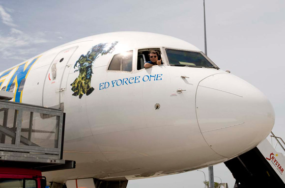 ブルース・ディッキンソンの操縦するジャンボジェットに乗ってワールドツアーに参加する、アイアン・メイデンのファンクラブ会員向けに企画されているツアー内ツアー“Bruce Air Tour”だが、もちろん毎回ソールドアウト。ブルース自ら操縦桿を握り、ファンをヨーロッパ各地のコンサート会場まで運ぶというのだから、当然なまでの大人気企画だ。機内及び現地ではツアー参加者限定のサービスが用意されているというのも人気をあおるところ。
