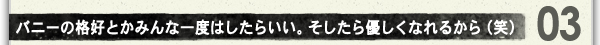 ――ところで、みんなでバニーの格好をして楽しそうに映ってるけど、これはどうしたの? 今まではカッコよくキメた写真が多かったのに。