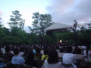 このスペシャル・コンサートは<第十四回 出雲総合芸術文化祭>の一環としてとして開催。縁結びの神・福の神として、全国の人々に親しまれている出雲大社は、大国主大神(おおくにぬしのおおかみ)をおまつりした、日本で最も古い神社建築の形式をもった大社造りで、御本殿は国宝に指定されている。