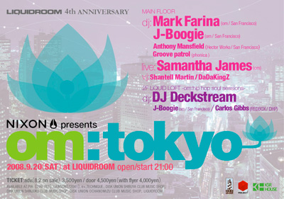 サンフランシスコのクラブシーンをリードする人気レーベル“OM RECORDS”をフィーチャーするパーティー<om:tokyo>が、ウェストコーストの軽やかな風と共に2008年も日本に上陸する。