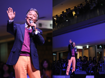 当日は祝日(秋分の日)と言うこともあり、表参道ヒルズ内の会場には約1,000人を越える観客が詰め掛けた。そんな中、ニュー・アルバム『時の忘れ物』から、自身が主演したドラマ『無理な恋愛』主題歌で、15年振りのシングルとして5月にリリースされた「忘れもの」をはじめ、ザ・スパイダース解散後のソロ・デビュー曲であり、数々のアーティストがカヴァーしている名曲「さらば恋人」の2曲を熱唱した。