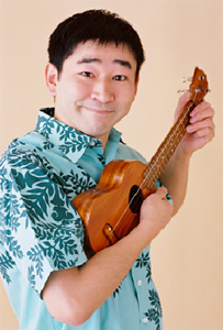 ウクレレえいじの芸歴はまさに波乱万丈。19991年、東京乾電池に入団し柄本明の付き人から芸能活動をスタート。2000年、世界的ジャズピアニスト山下洋輔氏の6人めの門下生となり、2001年、日本テレビ「雷波少年」の「夫婦交換生活」~「ウクレレ夫婦旅」出演。2003年、WAHAHA本舗内WAHAHA商店に参加、2004年、「博士と助手~細かすぎて伝わらないモノマネ選手権」に第1回から参加。2006年、みうらじゅん、安斎肇、リリー・フランキーと共にイベントを開催、みうらじゅんに「人間僕宝」に認定され、2007年、ウクレレ最大の祭典「ウクレレピクニック」で進行役をつとめる(ウクピクにはスタート以来毎年参加)。とまさに八面六臂の大活躍。