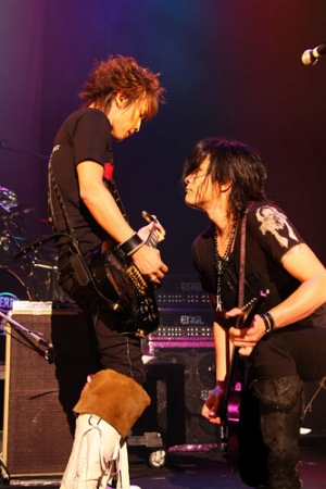 しかし、サプライズはこれだけではなかった。“もうひとつ禁断の扉を開きましょう” というkyoの言葉で呼び込まれてステージの登場したのは、なんとD’ERLANGER Tシャツを身に着けたINORAN。メリーに続いての、まさかの豪華セッションに会場の盛り上がりは最高潮に。D’ERLANGER&INORANの豪華組み合わせで披露された、D’ERLANGERの代表曲「LA VIE EN ROSE」は、間奏でINORANがギターソロを聴かせるなど、ファンにとっては夢のような一夜となった。もちろん、D’ERLANGERがオーガナイズしたイベントだからこそ、このような豪華セッションが実現したというのは言うまでもない。