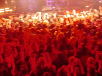| ▲演奏終了直後、メンバーたちがステージから姿を消したまさにその瞬間の客席。尾張名古屋、炎上! |