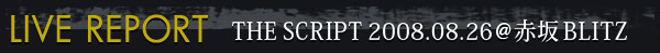 デビュー直後に全英チャートを制覇し、驚異の大型新人として世界的な注目を集めているTHE SCRIPT。初来日ライヴが行われた8月26日の段階では、日本では輸入盤はリリースされているものの国内盤発売はまだ2か月近くも先。しかし日本にも目ざといリスナーは多い。雨にもかかわらず赤坂BLITZ前に長蛇の列ができていたのがその証だ。話題の新人とあって、業界関係者も数多くつめかけていて、オールスタンディングのBLITZの客席フロアはあっという間に埋めつくされた。