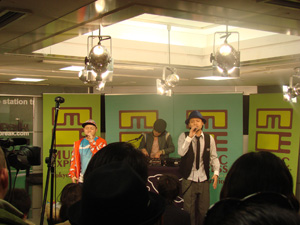 2008年11月にシングル「オレポーズ~俺なりのラブソング~」でデビューした沖縄出身3人組ヒップホップ・ユニット、PENGIN(ペンギン)。2ndシングル「春春春」を3月11日にリリースするにあたり、3月6日(金)に東京駅構内ライヴ・スペース「Break」にてフリー・ライヴを行なった。