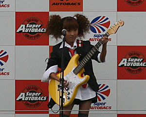 人気バラエティ番組『さんまのスーパーからくりTV』から飛び出した、11歳のギター少女、並木瑠璃が11月9日(日)、静岡・富士スピードウェイで行なわれた<AUTOBUCKS SUPER GT 2008 SERIES>の決勝レース前に表彰台に上り、「君が代」をギター独奏。多くの“瑠璃コール”を受けて、堂々たる演奏を披露した。