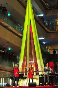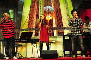 N.Y.在住のシンガー、JUJUが、表参道ヒルズのクリスマスツリー点灯式で、着うた(R)大ブレイク中の話題曲「素直になれたら JUJU feat. Spontania」をSpontaniaと共にパフォーマンスした。