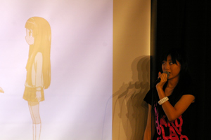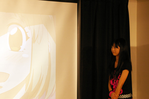 アニメと同じく「スッピンロック」からイベントはスタート。限定100人のファンを前に、感謝の言葉を述べた後、キャナァーリ倶楽部が7月にリリースした5枚目のシングル「瞳がキラキララ」のカップリングに収録されている「Lonely Moon」、そして『ヒャッコ』で上下山虎子(かげやまとらこ)を演じている声優・折笠富美子と一緒に歌った「学園生活」をしっとりと披露。15歳とは思えない小川真奈の豊かな表現力で会場を魅了した。