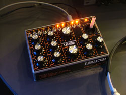 最初の製品となるのは、2009年前半発売予定のコンパクトシンセサイザーで、唯一来場者が触れる状態で展示。50台限定で価格は35,000円程度とのこと。つまみやボディの質感、インジケータのランプなど所有欲をそそる外観に仕上がっていた。同サイズの製品としてステップシーケンサー、リズムシンセサイザー、エフェクトボックス、ボコーダーが「DRIFT BOX」シリーズとしてリリースされる予定。