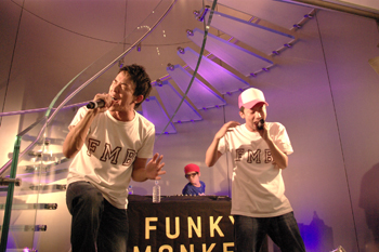 ファンキー加藤が「渋谷のクリスマスを盛り上げるためにやってきました!」と言うと、ライヴがスタート。アップルストア渋谷店に集まった200人の観客の前で、「ぼくはサンタクロース」をはじめ、11月に発売した新曲「希望の唄」など5曲を熱唱した。