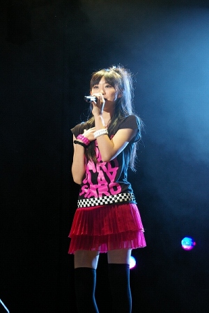 また、イベントには2008年に行なわれた<メガネスーパー Presents 第3回『妹メガネっ娘♀・姉貴分メガネっ娘♀オーディション』>のグランプリを受賞した、ちーちゃんがファンに初お披露目。緊張した面持ちで、司会の小川麻琴とトーク、そしてNICE GIRL μのみのりんとともに「夏のトロピカル娘」を披露した。