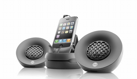 未来の火星基地のようなデザインは、専用クレードルとスピーカー。専用のクレードルでiPhone 3GやiPod touch 2G、1Gなどを縦置き/横置きにして、ビデオやスライドショーを楽しむことも可能だ。