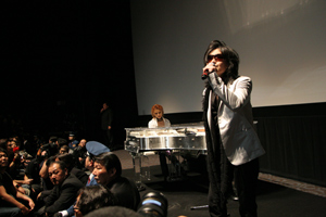 そう、なんとメンバーは赤坂BLITZにいなかった。<史上初 大晦日 シネマジャック!TOHOシネマズでXジャンプを目撃!>と銘打たれた映画館でのライヴ生中継会場、そのひとつであるTOHOシネマズ六本木のスクリーン7に、TOSHIとYOSHIKIは突如現れたのである。これぞまさしくサプライズ。誰が映画館会場にTOSHIとYOSHIKIがやってくると想像したであろうか。その時間いるべき場所は赤坂のはずだ。
