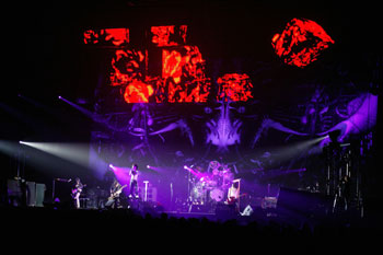 彼らがこの会場のステージに立ったのは1999年12月18日以来のこと。しかし“久しぶりの大阪城ホール”であるという事実以上に重要なことがあった。2008年11月に世界17ヵ国で発売に至った最強にして最狂の怪物アルバム『UROBOROS』の世界観体現を徹底的に突き詰めたライヴが、この夜、初めて披露されたのである。