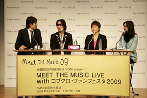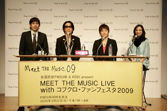 彼らの2009年初ライブとなる同公演2時間半のうちの1時間を、番組用として特別に構成/演出し、<全国民放FM53局&KDDI present MEET THE MUSIC LIVE with コブクロ・ファンフェスタ2009>として、3月22日(日)午後7時~8時に放送となる。