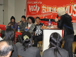 など、メンバーの実体験談も折り混ぜ(放送できなそうなキワドいネタも入れつつ)、大いに盛り上がった。さらに、最後にその教室でスペシャル・ライヴも披露。抱腹絶倒のトーク・ショーのあとは号泣ソング「アイヲクダサイ」と新曲「二人(そら)」の2曲を熱唱し、学生たちを大感動させ、大喝采と共にイベントを締めくくった。