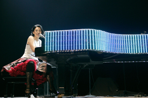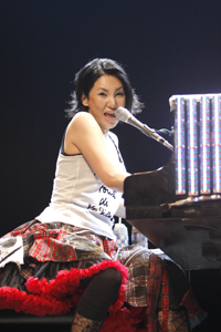 さらに、2008年10月にアメリカ・サンフランシスコにて入籍した米国人の現在の夫に向けて、ナット・キング・コールの大ヒット曲「L-O-V-E」を歌唱するという場面も。ピアノのパフォーマンスでは、指先だけでなく、肘、膝、ヒップなど全身を使ってパワフルに弾き、会場を沸かせた。