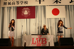 女子中高生を中心にブレイク中のガールズ・ユニット、Lil’B。3月1日(日)、栃木県宇都宮市にある文星芸術大学付属高等学校(旧宇都宮学園高等学校)の卒業式にてサプライズ・ライヴを行なった。