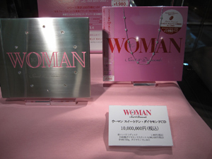 10,000,000円(税込)というこの『WOMANスイートテン・ダイヤモンド』は、もちろん世界最高額のCDとして、現在ギネス・ワールド・レコーズ申請中。購入された時点で最短でギネス・ワールド・レコーズ世界最高額CD商品の承認が下りる予定となっており、貴方がギネス商品のオーナーということになります。義理CDは冗談としても、これ複数枚買っちゃったりしたら、テレビ局から取材がくるかも。