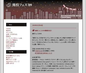 第3弾の追加発表ではどんなアーティストの参加が加わるのか、楽しみは尽きない。文化祭ノリの<廃校フェス2009>、まだまだ有志は広がっている。